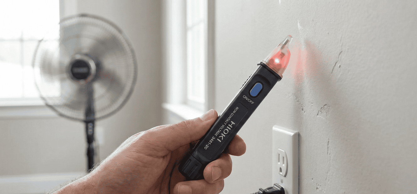 Các dòng bút thử điện không tiếp xúc phổ biến như Hioki 3481-20 thường có độ nhạy khá tốt với điện áp gia đình, giúp bắt tín hiệu xuyên qua lớp sơn mỏng dễ dàng. Bạn nên bật các thiết bị điện trong phòng như đèn, tivi hoặc cắm quạt vào ổ cắm thuộc bức tường định khoan để đảm bảo dây dẫn đang có tải. Dòng điện chạy qua dây càng lớn thì từ trường sinh ra càng mạnh, giúp các thiết bị nhỏ gọn như Kyoritsu 5711 phát hiện vị trí dây nhanh hơn.